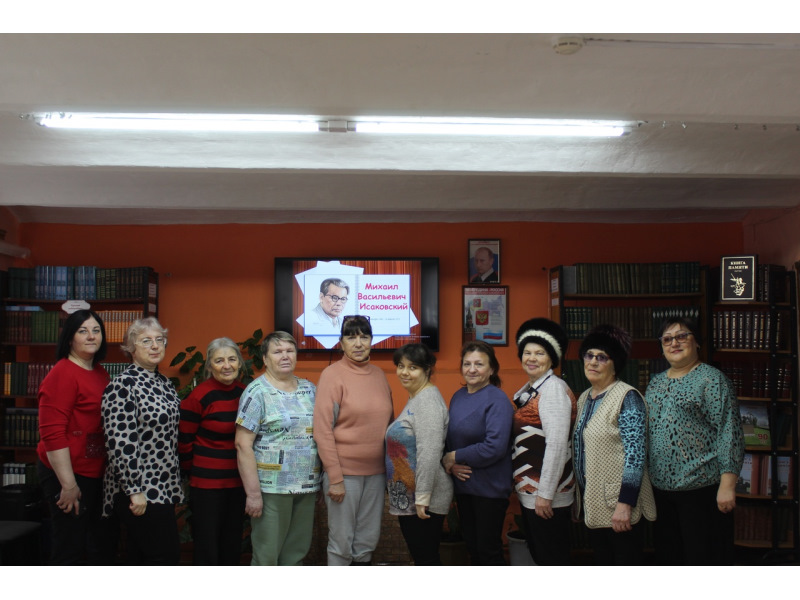 19 января исполняется 125 лет со дня рождения русского советского поэта Михаила Васильевича Исаковского. Судьбе и творчеству широко известного поэта-песенника была посвящена музыкальная гостиная «Жизнь сквозь песенные строки», которую подготовили и провели сотрудники отдела обслуживания центральной библиотеки (Е.Л.Максимова, Л.Н. Дружкова, О.В. Данильцева) для отдыхающих дневного отделения КЦСОН.