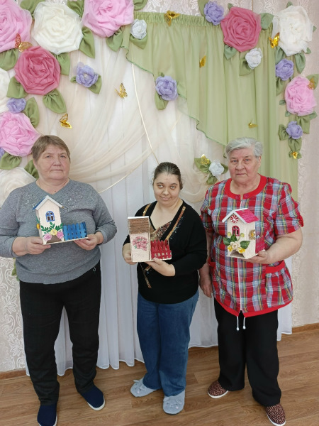В отделении дневного пребывания отдыхающие своими руками сделали чайные домики.