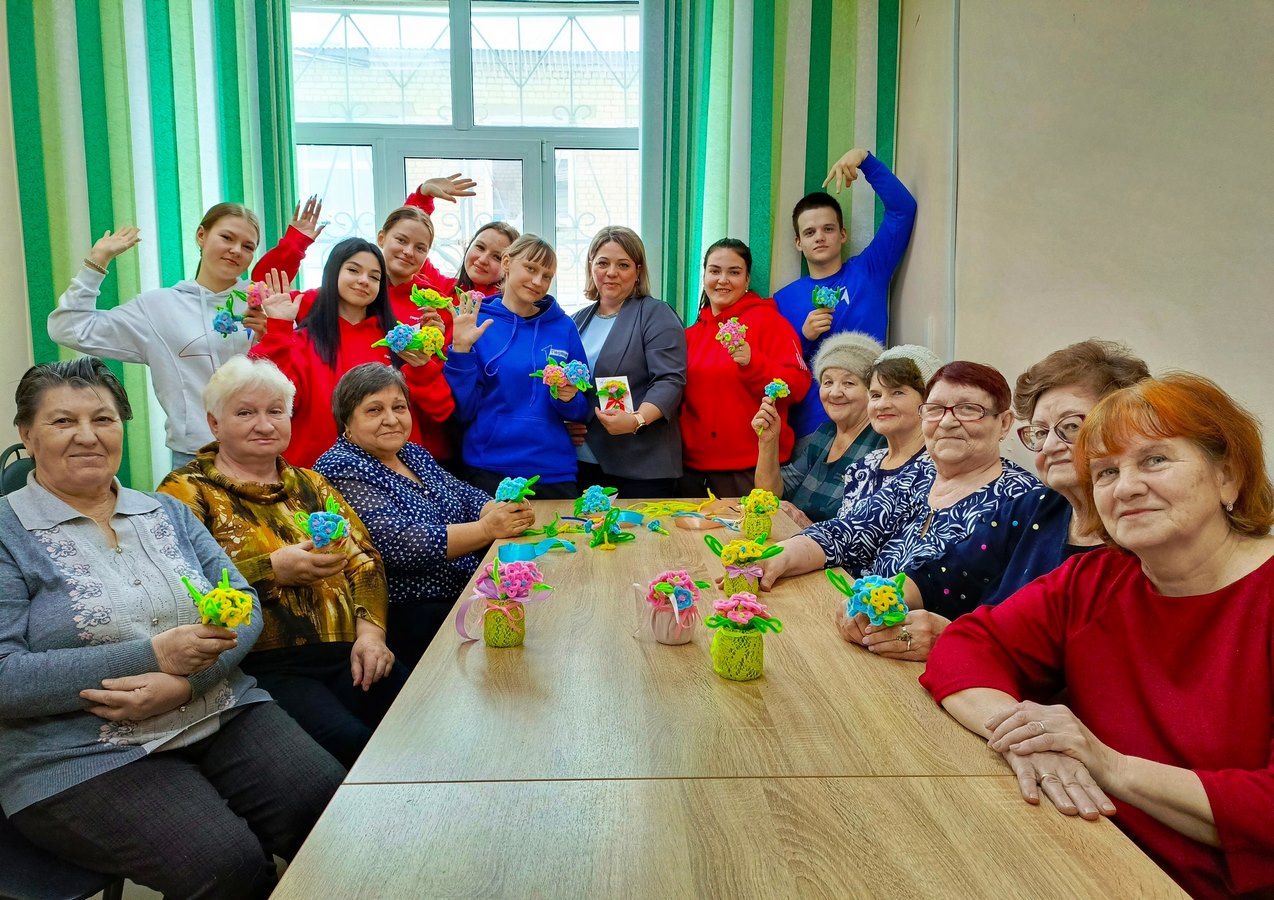 Встречая начало весны, «серебряные» волонтёры вместе со студентами Сосновского агропромышленного техникума собрались в нашем Центре на мастер-класс, посвящённый приближающемуся празднику 8 Марта.