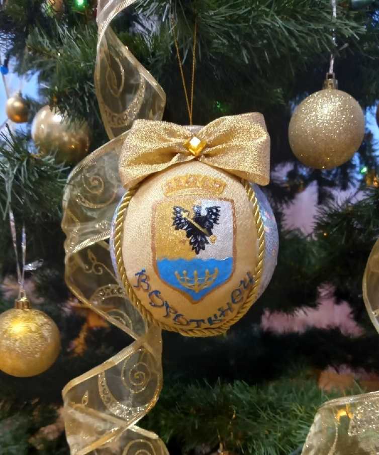 Для новогодней ёлки в министерство социальной политики Нижегородской области сотрудником нашего учреждения Лопоткиной Н.Ю была изготовлена своими руками новогодняя игрушка с гербом го Воротынский.