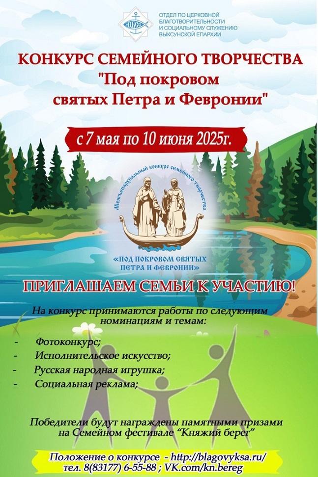 Приглашаем семьи из нашей области принять участие в конкурсе семейного творчества "Под покровом святых Петра и Февронии".