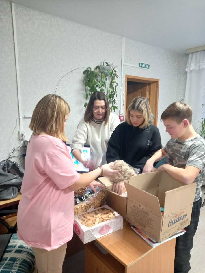 Ученики Красногорской школы совместно с работниками администрации и специалистом ОССО собрали для воинов СВО подарки к Новому году