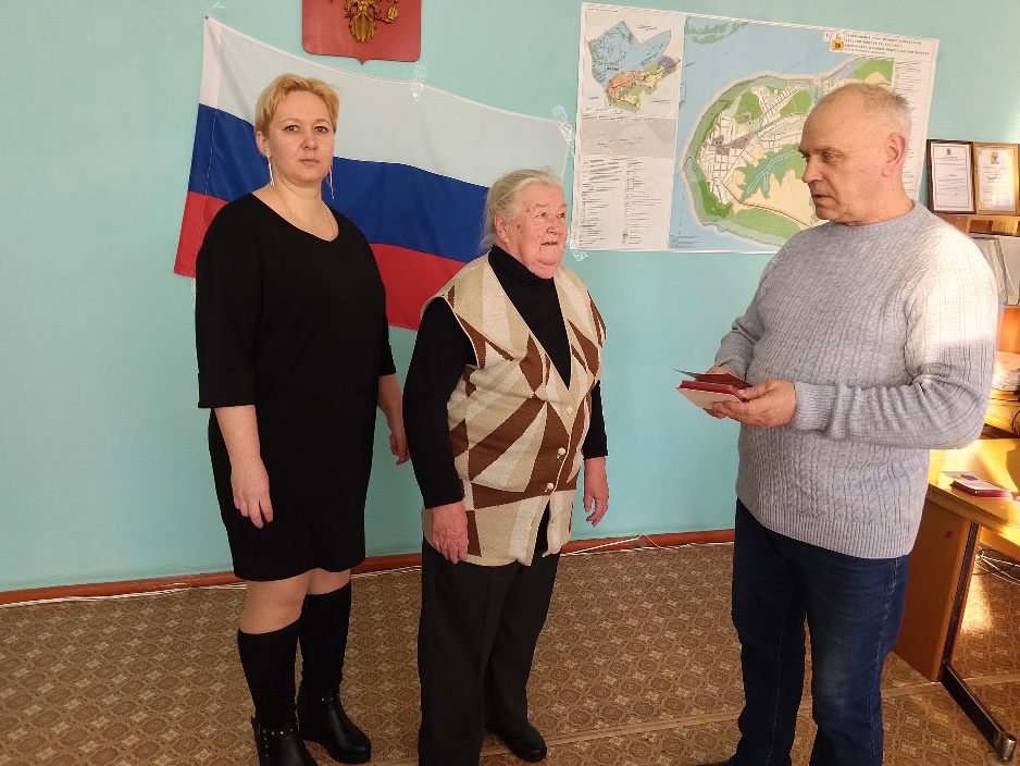 1 февраля 2024 года в торжественной обстановке заместитель начальника Отдела развития территорий администрации городского округа Воротынский Халаимовым А.М., специалистом ОССО ГБУ КЦСОН Воротынского района Чугуниной Е.В. состоялось вручение медалей "Дети военного времени" жителям с.Фокино, с.Сомовка, с.Белогорка
